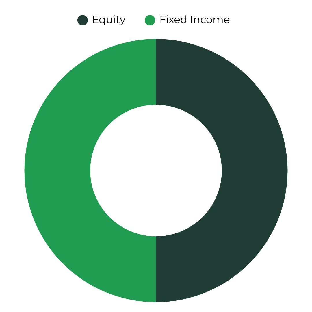 Typical equity exposure of 40–60%